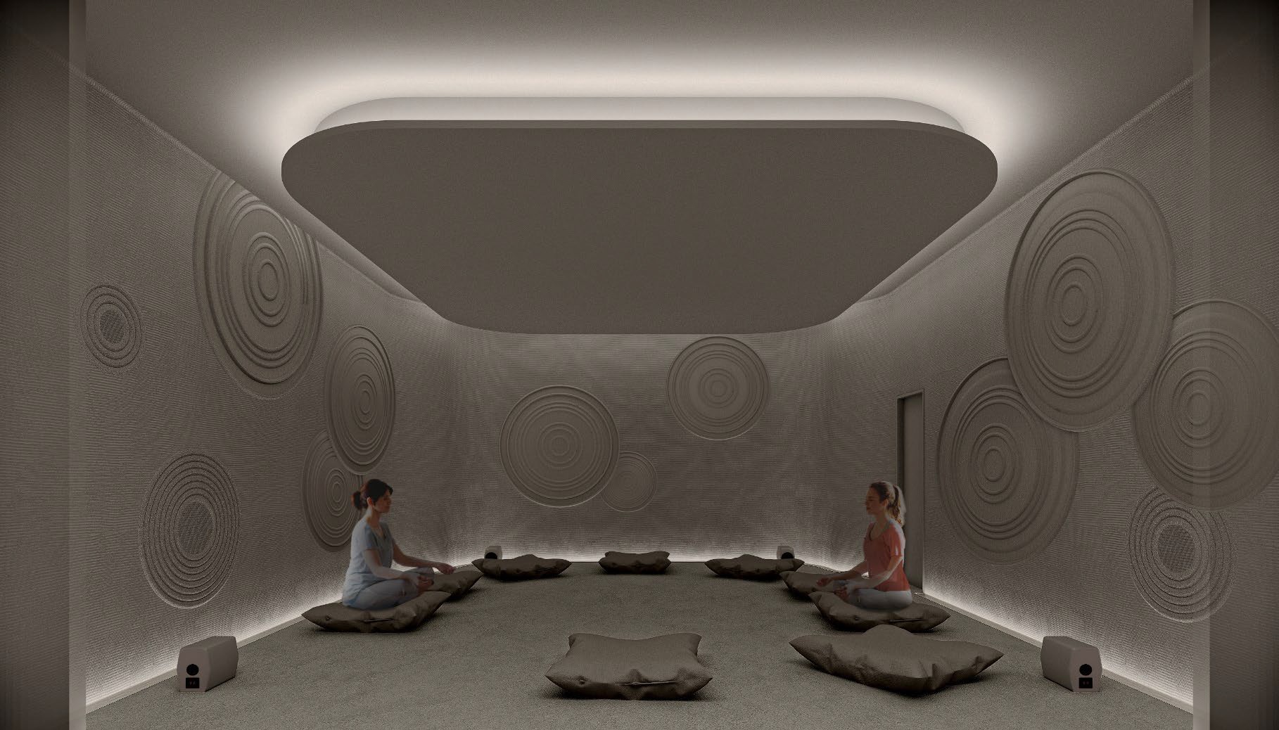 MEDITATION STUDIOでは、音・照明・映像が連動するシステムにより、没入感の高い空間を演出。非日常的な「空っぽ」体験を提供します。